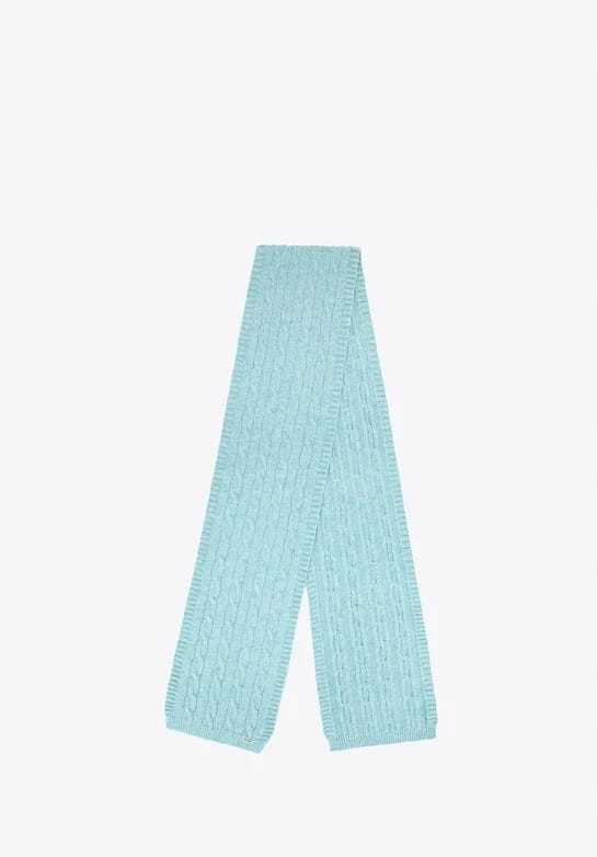 Przybliżone wymiary: wysokość czapki 21 cm; szalik: 180 cm x 23 cm.