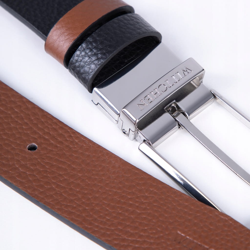 Męski pasek dwustronny to elegancki i funkcjonalny dodatek, który będzie świetnym uzupełnieniem garderoby każdego mężczyzny. Wykonany z wysokiej jakości skóry naturalnej o groszkowanej fakturze, pasek zapewnia wytrzymałość i styl przez długi czas. Dwustronny i dwukolorowy design umożliwia szybkie dopasowanie go do wielu stylizacji, zarówno casualowych, jak i półformalnych.