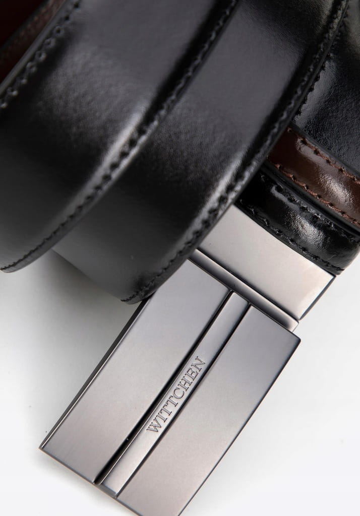 Praktyczne detale: Dwie skórzane szlufki zapewniają idealne dopasowanie i porządek, a przy tym zwiększają funkcjonalność paska.