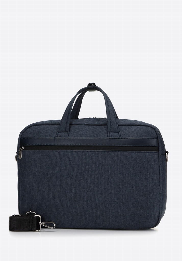 Lekka i pojemna torba męska na laptopa 15,6" to doskonały wybór dla osób ceniących połączenie elegancji i funkcjonalności. Ta duża torba biznesowa nie tylko pomieści komputer o maksymalnych wymiarach 37 cm x 27 cm, w miękko wyścielanej kieszeni, ale też pomoże w dobrej organizacji dokumentów A4 i innych przyborów niezbędnych do pracy. W środku znajdziesz także dwie otwarte kieszonki na drobiazgi. W zewnętrznych kieszeniach na zamek: przedniej i od strony ciała, możesz także schować drobne rzeczy osobiste. Torba ma kolor granatowy. Wykonana została z wytrzymałego poliestru. Prosty fason dopełniają stylowe wstawki ze skóry ekologicznej, które świetnie podkreślają nowoczesny wygląd dodatku. Odpinany, materiałowy pasek regulowanej długości zapewnia komfortowe noszenie na ramieniu. Postaw na męską torbę na laptopa WITTCHEN 98-3P-500-7 i ciesz się ponadczasowym dodatkiem każdego dnia.