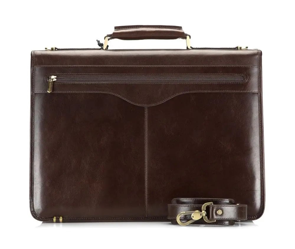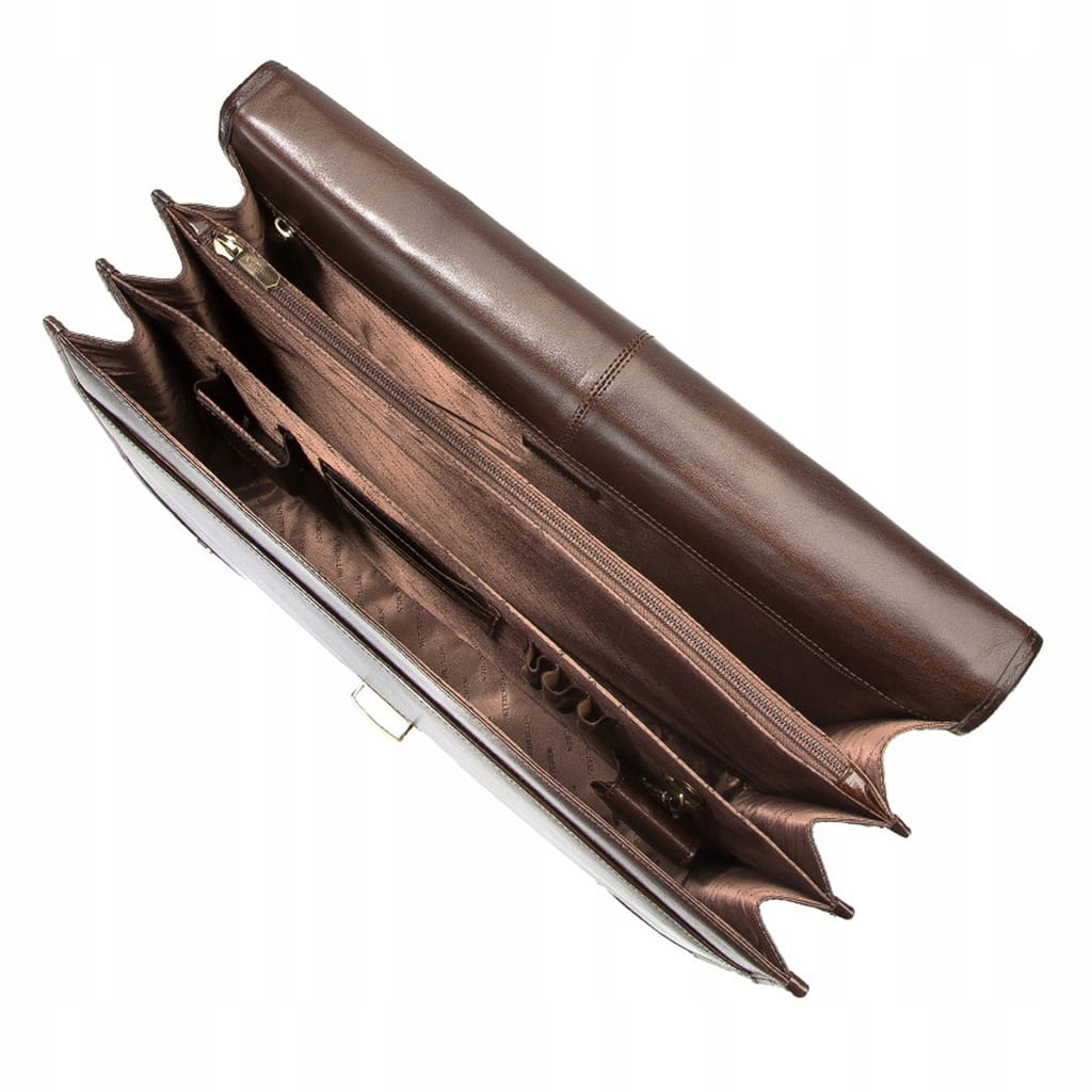 Teczka z kolekcji Arizona Ekskluzywna skórzana aktówka to stylowy dodatek do profesjonalnej stylizacji. Elegancka, klasyczna aktówka biznesowa pomieści notebook, a dzięki odpinanemu paskowi może być noszona na ramieniu. 3 komory główne; 3 kieszenie, w tym 2 zamykane na suwak; miejsce na notebook ; 3 miejsca na długopisy; 4 miejsca na karty kredytowe; miejsce na telefon komórkowy ; mała, odpinana kieszeń na drobiazgi; całość przykryta klapą blokowaną zamkiem na kluczyk; z tyłu kieszeń zamykana na suwak; odpinany, regulowany pasek .