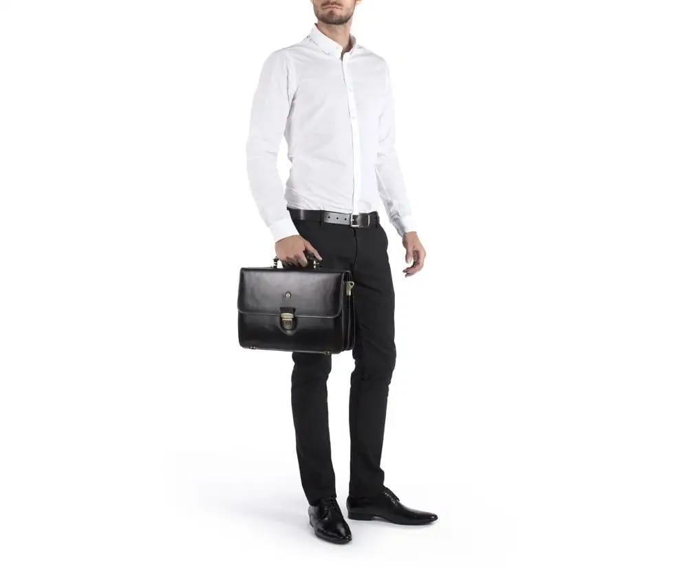 Stylowa skórzana teczka to dodatek, który mimo przemijających mód zawsze pozostaje na topie. Klasyczny model teczki został wyposażony w rączkę pokrytą skórą oraz wygodny, odpinany pasek.