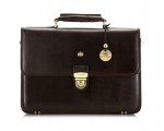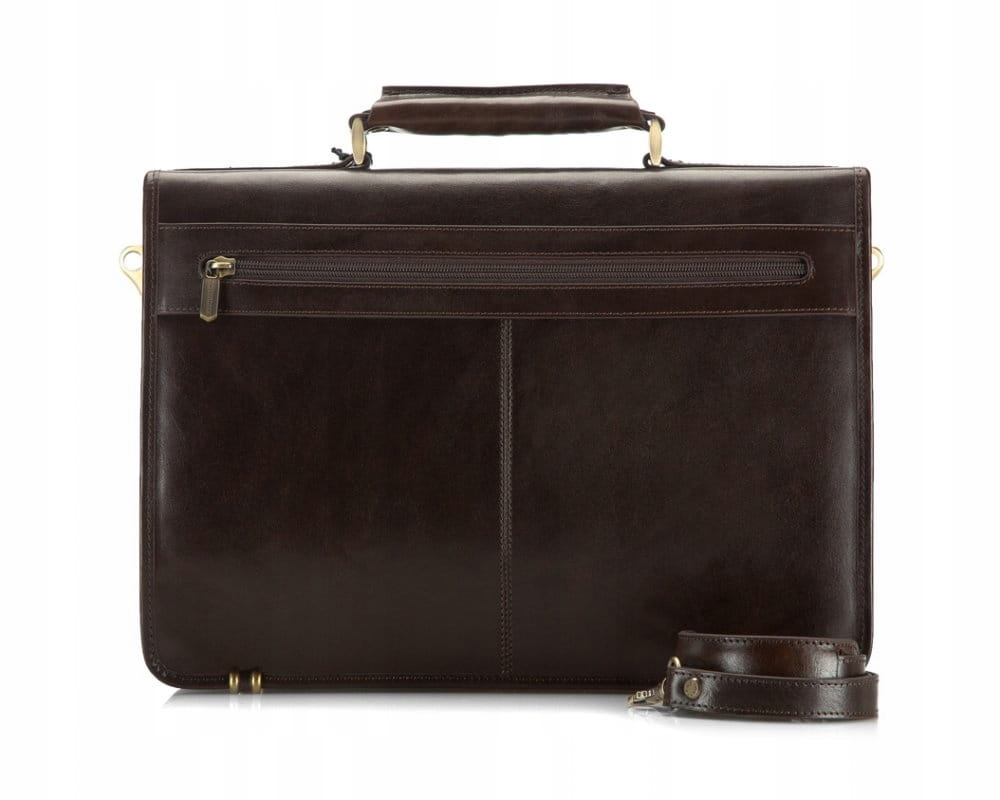 Klasyczny model teczki został wyposażony w rączkę pokrytą skórą oraz wygodny, odpinany pasek.