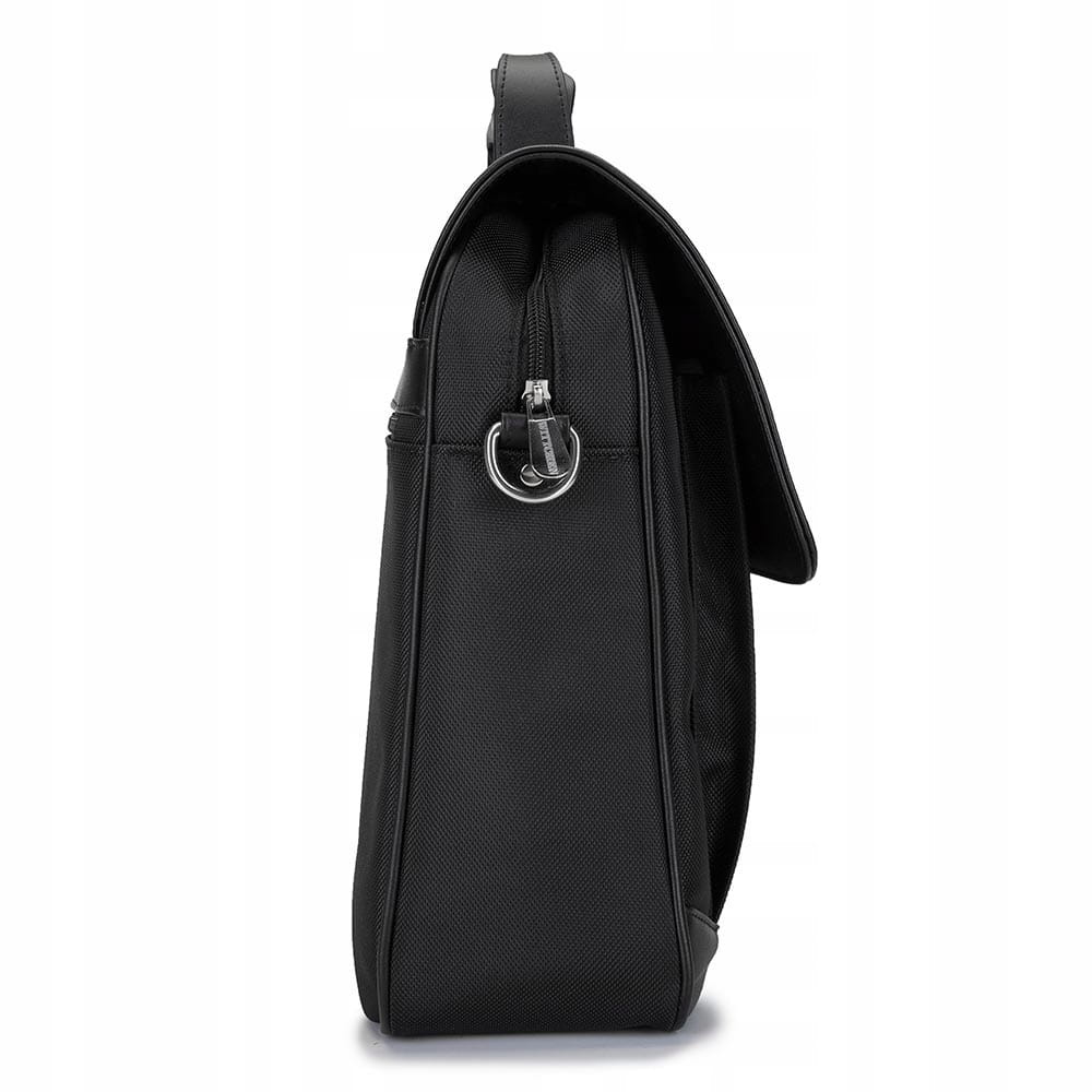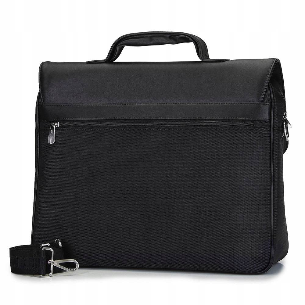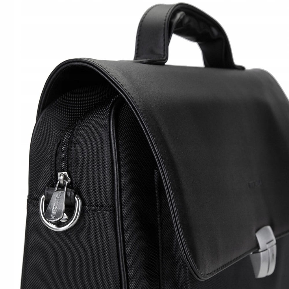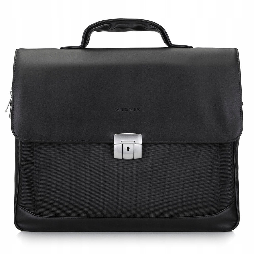Ta prosta teczka to doskonały dodatek do pracy dla eleganckiego mężczyzny, jak również na ważne spotkanie. W środku ma osobną, miękko wyściełaną kieszeń na laptopa 15,6 cala oraz dwie dodatkowe kieszenie, w tym jedną na telefon. W pojemnej komorze zmieszczą się również teczki i inne dokumenty w formacie A4. Dzięki podwójnemu zapięciu – na klamrę z kluczykiem i zamek możesz być pewien, że jej zawartość będzie dobrze zabezpieczona. Uszyta jest z wytrzymałej tkainyyn z dodatkowym panelem i miękką klapą ze skóry ekologicznej. Ta elegancka materiałowa teczka z kieszenią na laptopa będzie doskonałym uzupełnieniem zarówno pół-formalnych, jak i formalnych stylizacji.