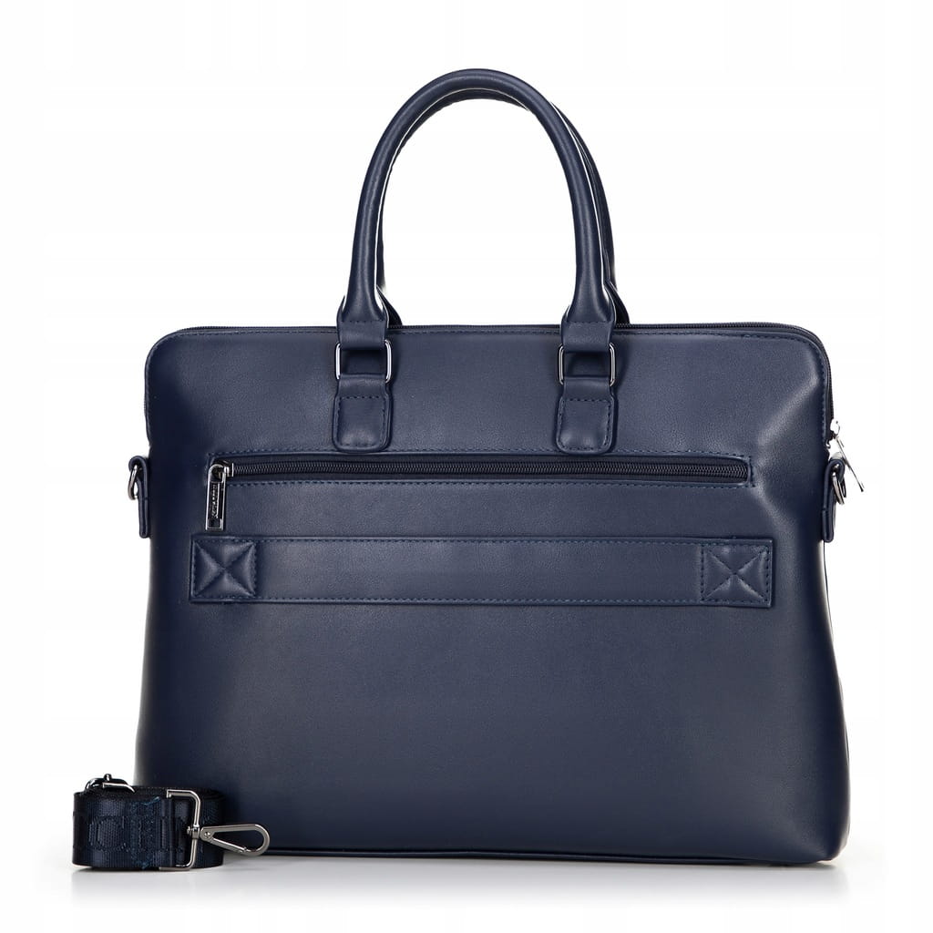 Stylowa torba wykonana z wysokiej jakości ekoskóry to idealne rozwiązanie dla osób ceniących elegancję i wygodę. Posiada dedykowaną przegrodę na laptopa (do 24 x 37 cm), przestronne wnętrze oraz praktyczne kieszenie – z przodu na magnes i z tyłu na zamek. Wnętrze zawiera dwie otwarte kieszonki na drobiazgi.