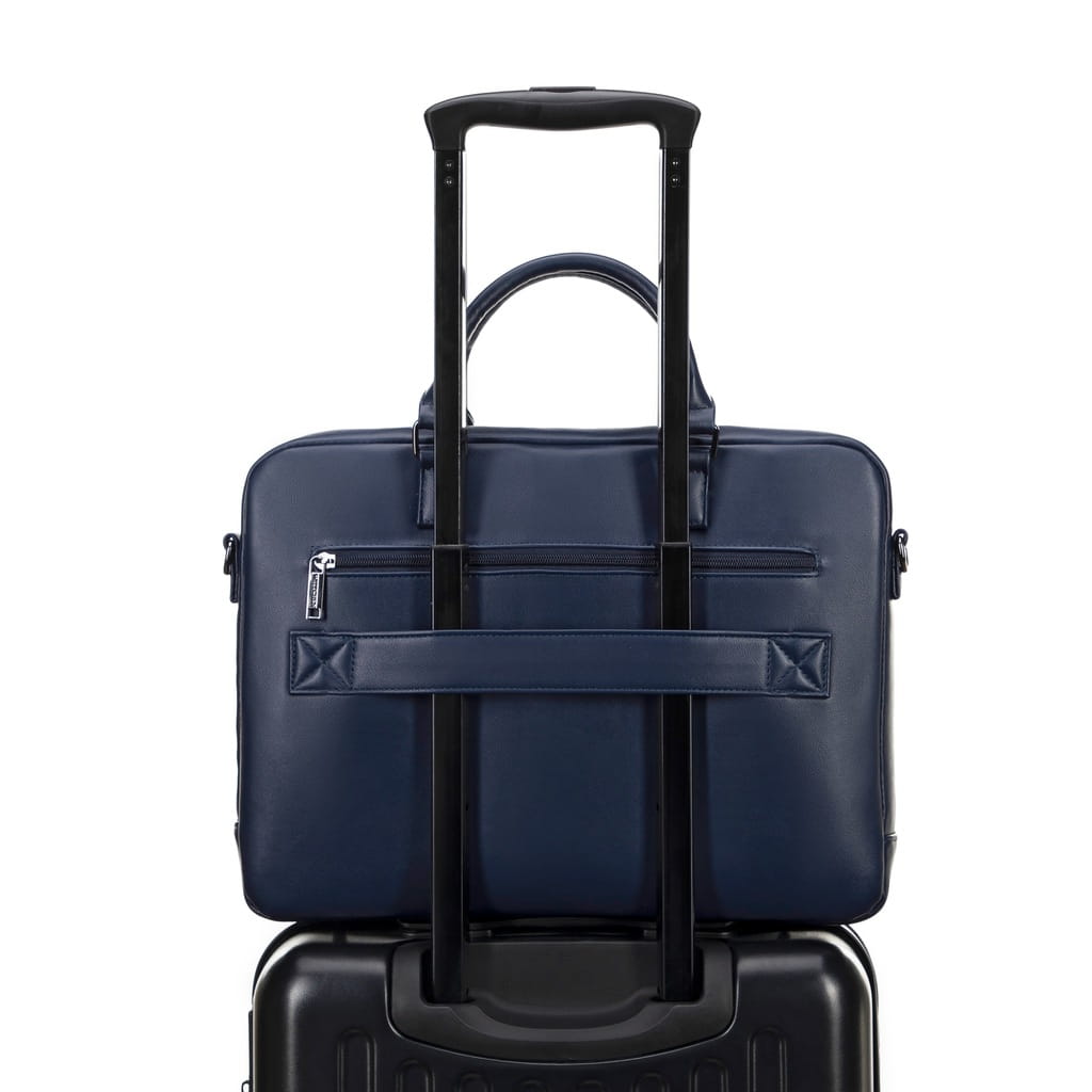 Torba oferuje dwa sposoby noszenia – na rączkach lub z użyciem regulowanego, odpinanego paska. Dodatkowe kieszenie z przodu i z tyłu zapewniają szybki dostęp do niezbędnych rzeczy, a tylny uchwyt pozwala przymocować ją do walizki.