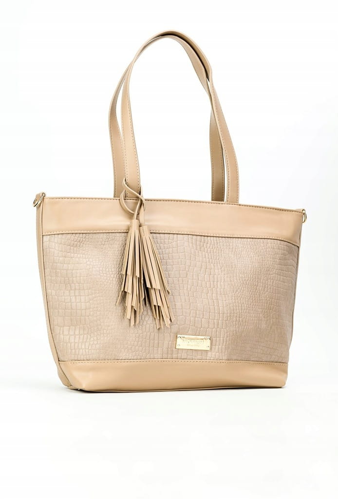 Stylowa shopperka damska, łącząca funkcjonalność z subtelnym designem. Torba jednokomorowa z jasną, logowaną podszewką, wyposażona w dodatkowe kieszonki, które umożliwiają wygodne przechowywanie drobiazgów. Zapinana od góry na suwak, zapewnia bezpieczeństwo przechowywanych rzeczy. Model zawieszony na wygodnych rączkach, z możliwością przypięcia regulowanego paska, co gwarantuje komfort noszenia.