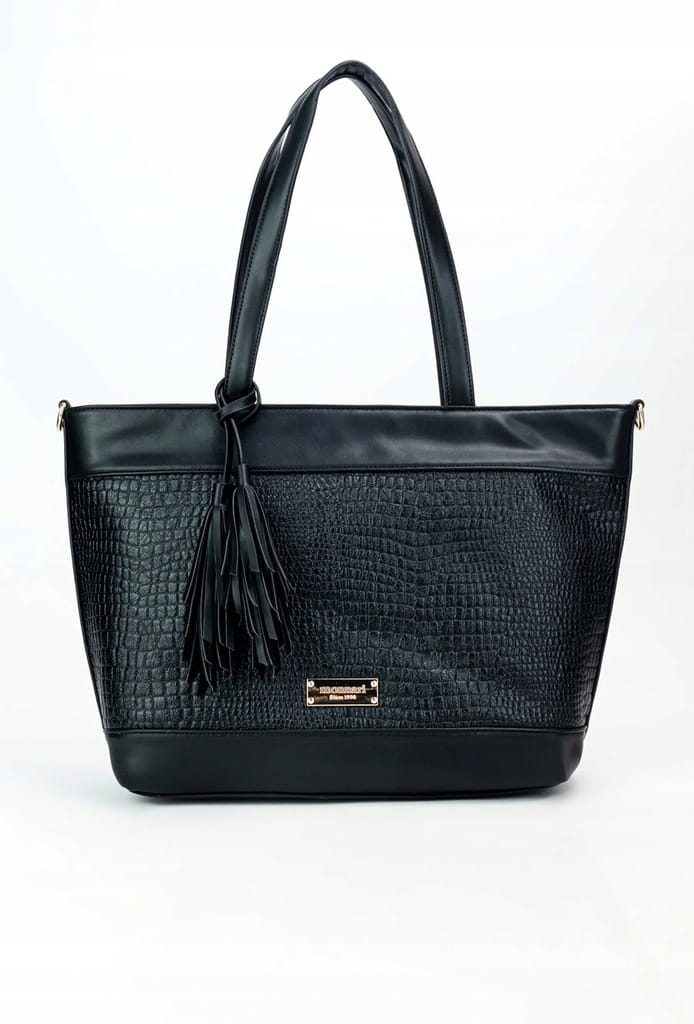 Stylowa shopperka damska, łącząca funkcjonalność z subtelnym designem. Torba jednokomorowa z jasną, logowaną podszewką, wyposażona w dodatkowe kieszonki, które umożliwiają wygodne przechowywanie drobiazgów. Zapinana od góry na suwak, zapewnia bezpieczeństwo przechowywanych rzeczy. Model zawieszony na wygodnych rączkach, z możliwością przypięcia regulowanego paska, co gwarantuje komfort noszenia.