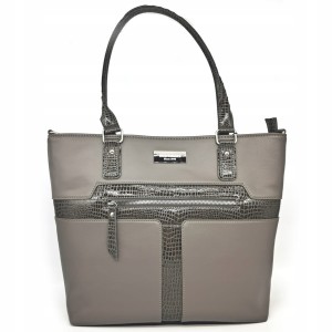 Stylowa shopperka damska, łącząca funkcjonalność z subtelnym designem. Torba jednokomorowa z jasną, logowaną podszewką, wyposażona w dodatkowe kieszonki, które umożliwiają wygodne przechowywanie drobiazgów. Zapinana od góry na suwak, zapewnia bezpieczeństwo przechowywanych rzeczy. Model zawieszony na wygodnych rączkach, z możliwością przypięcia regulowanego paska, co gwarantuje komfort noszenia.