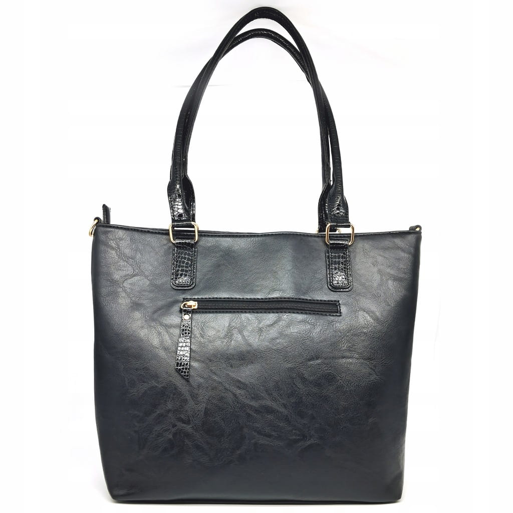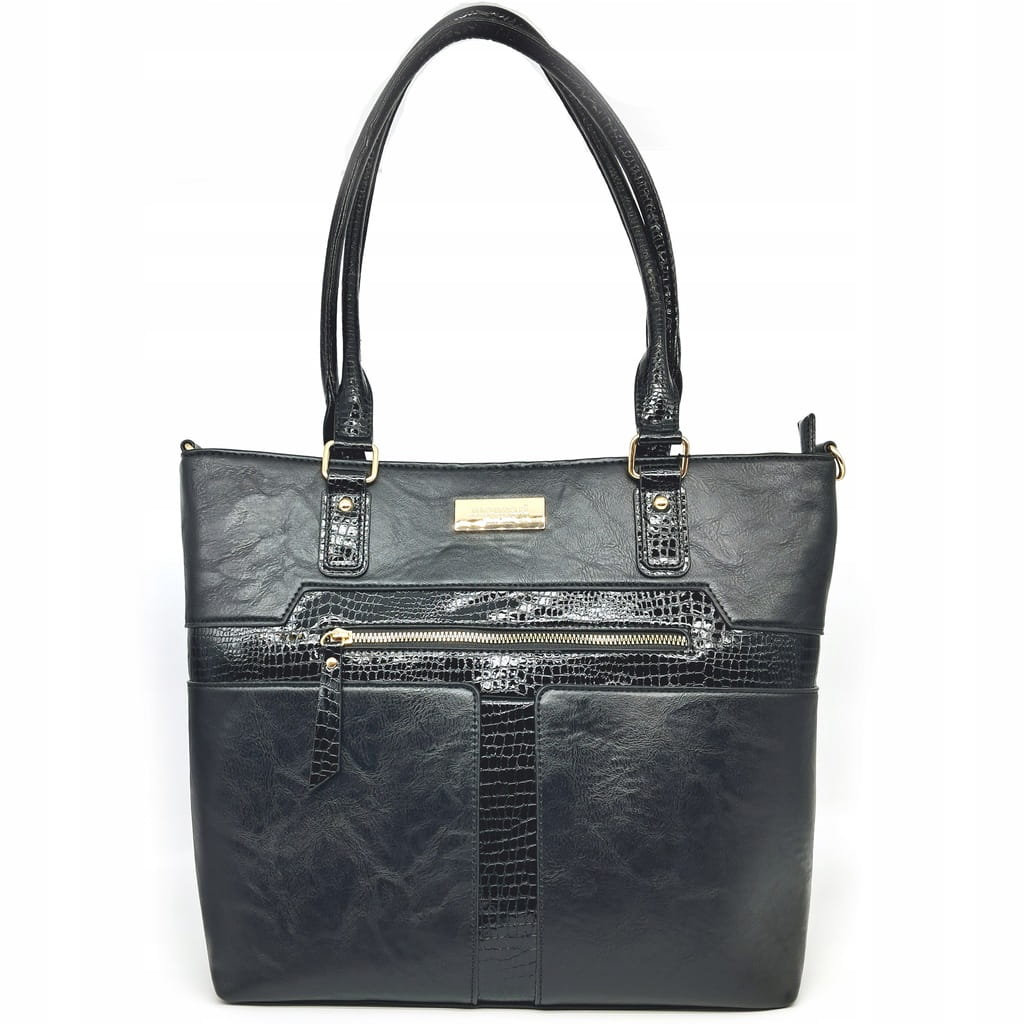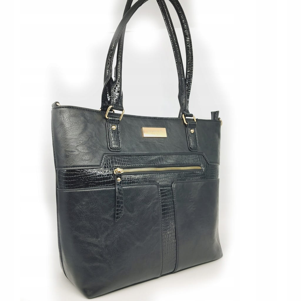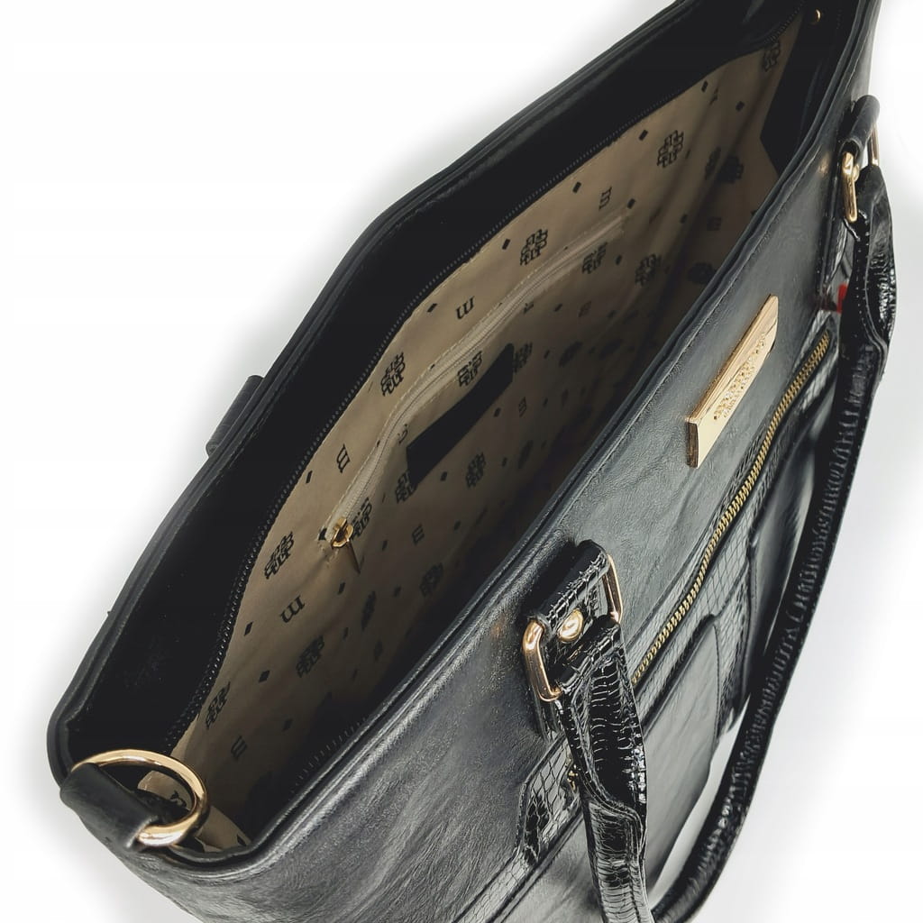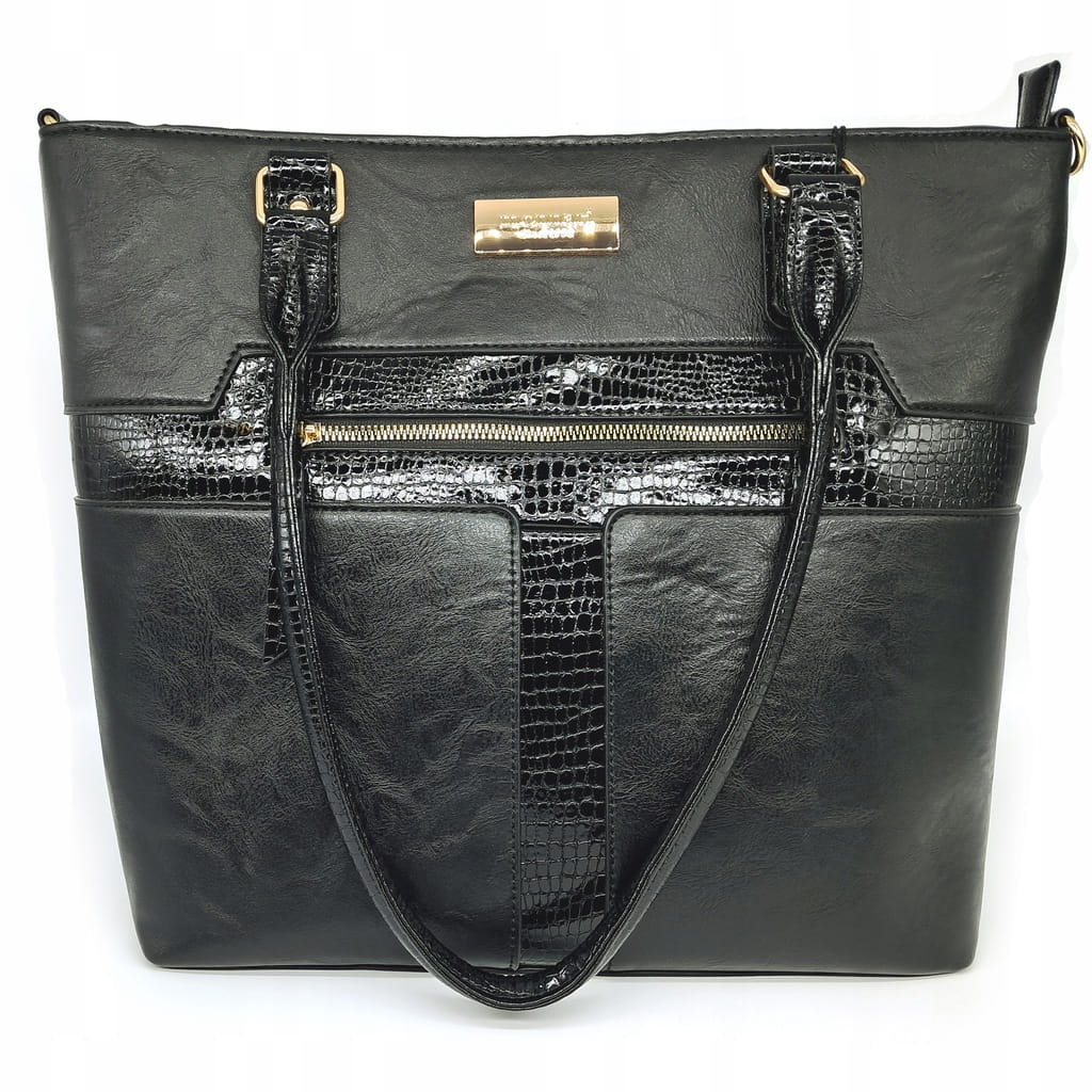 Stylowa shopperka damska, łącząca funkcjonalność z subtelnym designem. Torba jednokomorowa z jasną, logowaną podszewką, wyposażona w dodatkowe kieszonki, które umożliwiają wygodne przechowywanie drobiazgów. Zapinana od góry na suwak, zapewnia bezpieczeństwo przechowywanych rzeczy. Model zawieszony na wygodnych rączkach, z możliwością przypięcia regulowanego paska, co gwarantuje komfort noszenia.