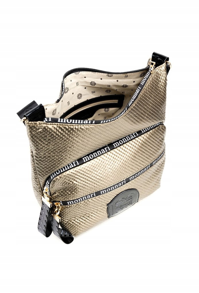 Kieszenie: Dwie zewnętrzne kieszenie na suwak z ozdobną taśmą z logo „Monnari”