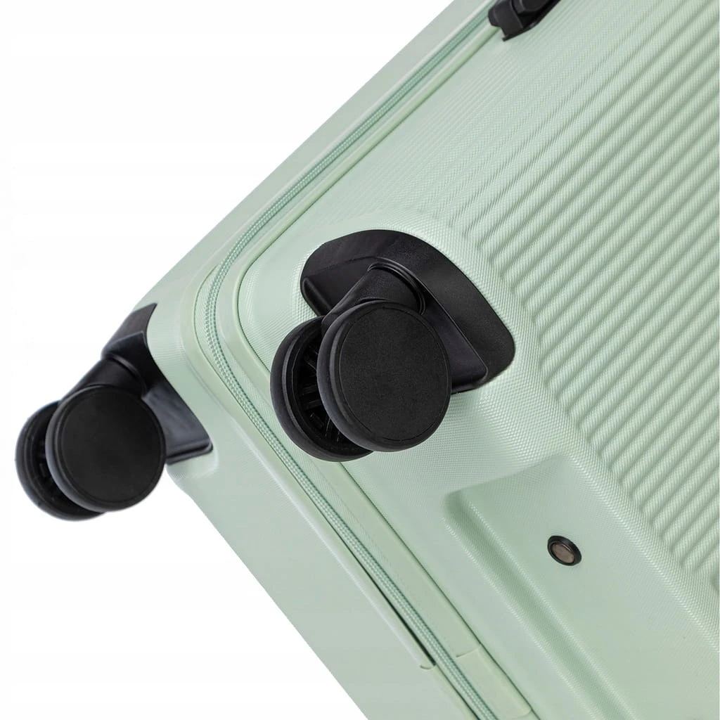 Cztery podwójne kółka obracające się o 360° gwarantują płynne i stabilne prowadzenie walizki w każdym kierunku. Modele średni i duży zostały dodatkowo wyposażone w boczne nóżki umożliwiające bezpieczne ustawienie walizki na boku.